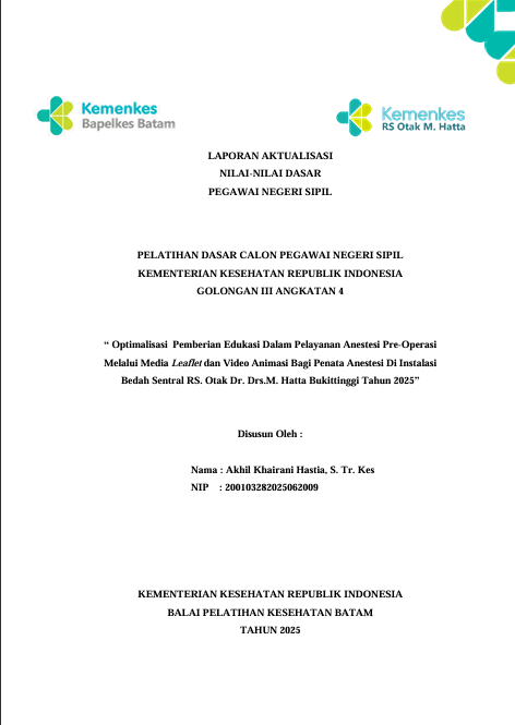 Optimalisasi Pemberian Edukasi Dalam Pelayanan Anestesi Pre-Operasi Melalui Media Leaflet Dan Video Animasi Bagi Penata Anestesi Di Instalasi Bedah Sentral Rs. Otak Dr. Drs.M. Hatta Bukittinggi Tahun 2025