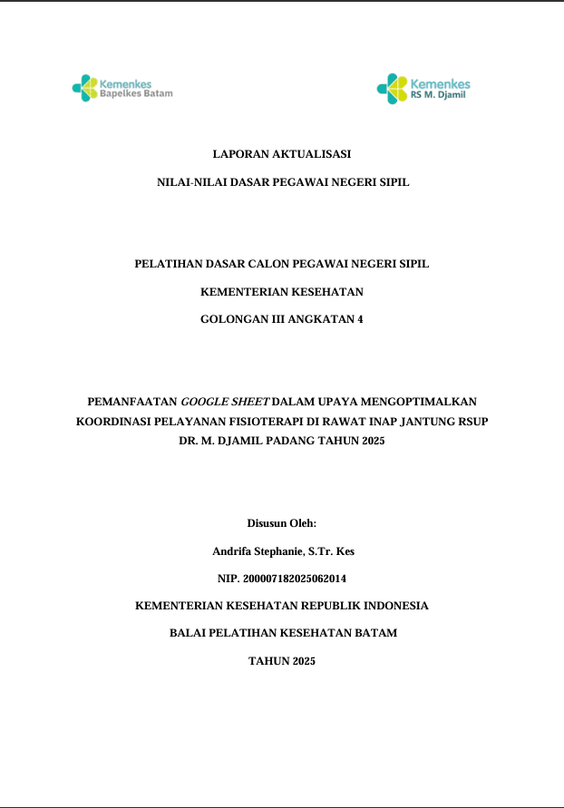 Pemanfaatan Google Sheet Dalam Upaya Mengoptimalkan Koordinasi Pelayanan Fisioterapi Di Rawat Inap Jantung Rsup Dr. M. Djamil Padang Tahun 2025