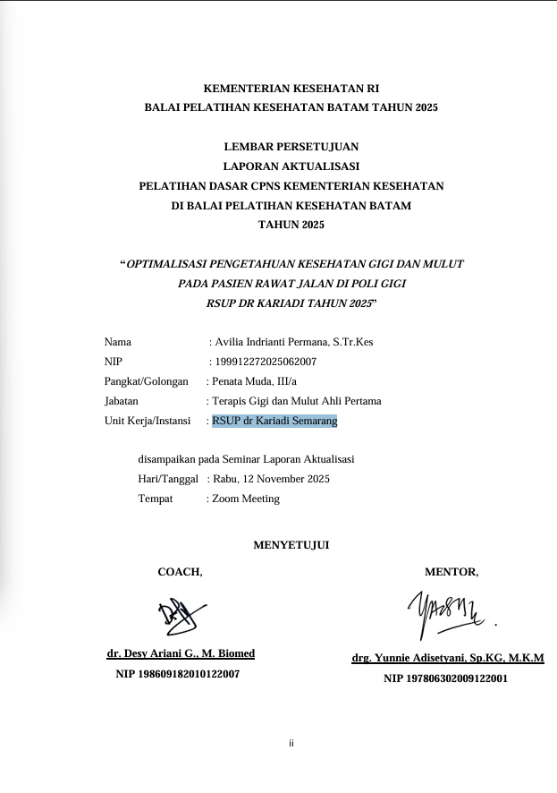 Optimalisasi Pengetahuan Kesehatan Gigi Dan Mulut Pada Pasien Rawat Jalan Di Poli Gigi Rsup Dr Kariadi Tahun 2025