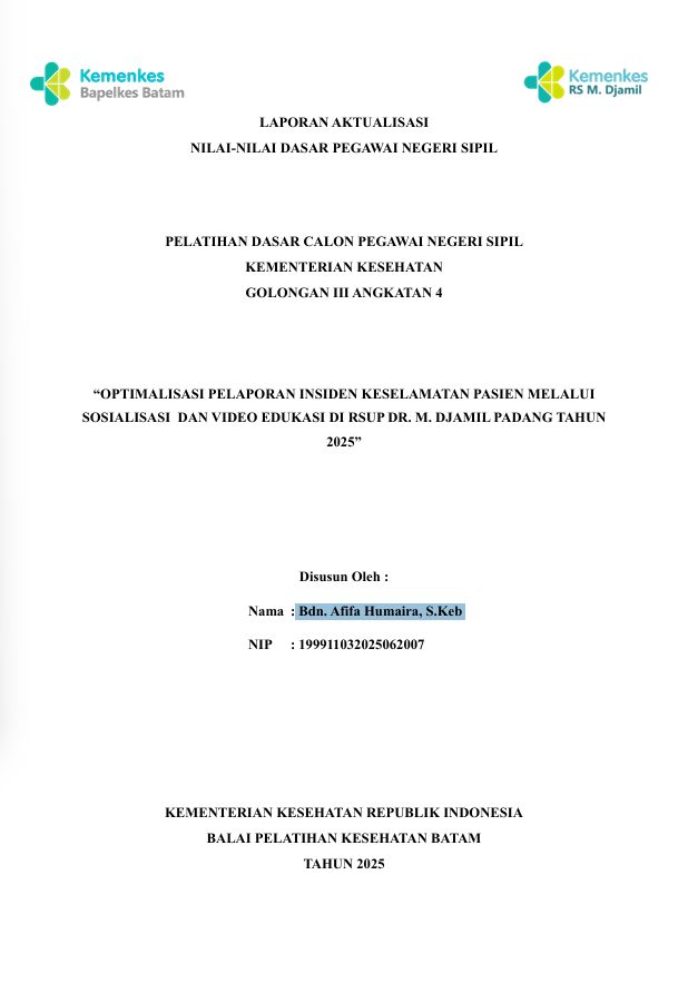 Optimalisasi Pelaporan Insiden Keselamatan Pasien Melalui Sosialisasi Dan Video Edukasi Di Rsup Dr. M. Djamil Padang Tahun 2025