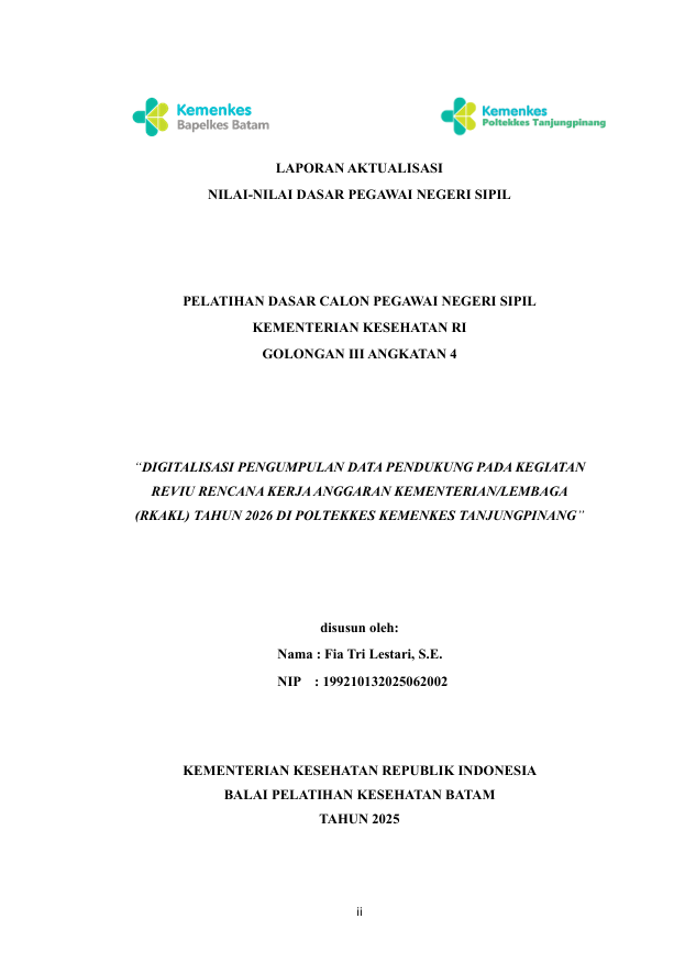 Digitalisasi Pengumpulan Data Pendukung Pada Kegiatan Reviu Rencana Kerja Anggaran Kementerian/Lembaga (Rkakl) Tahun 2026 Di Poltekkes Kemenkes Tanjungpinang