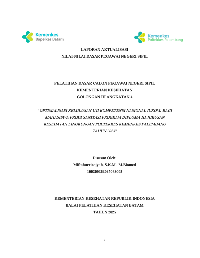 Optimalisasi Kelulusan Uji Kompetensi Nasional (Ukom) Bagi Mahasiswa Prodi Sanitasi Program Diploma Iii Jurusan Kesehatan Lingkungan Poltekkes Kemenkes Palembang Tahun 2025