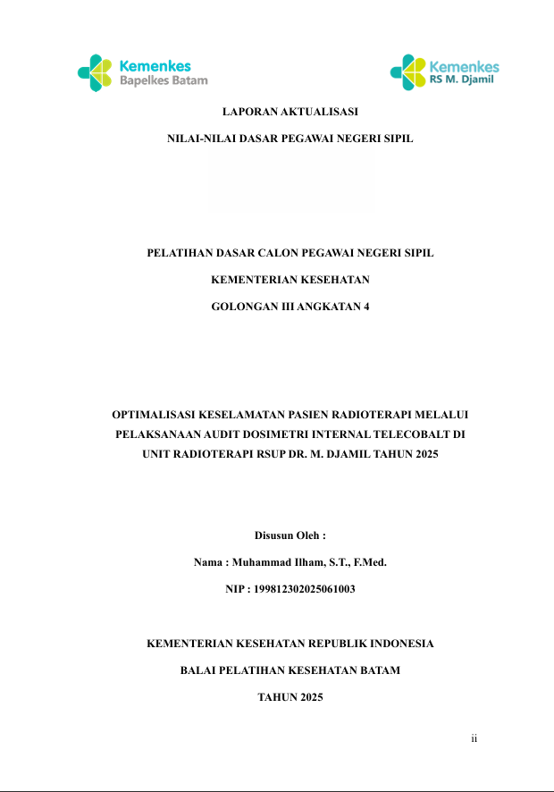Optimalisasi Keselamatan Pasien Radioterapi Melalui Pelaksanaan Audit Dosimetri Internal Telecobalt Di Unit Radioterapi Rsup Dr. M. Djamil Tahun 2025