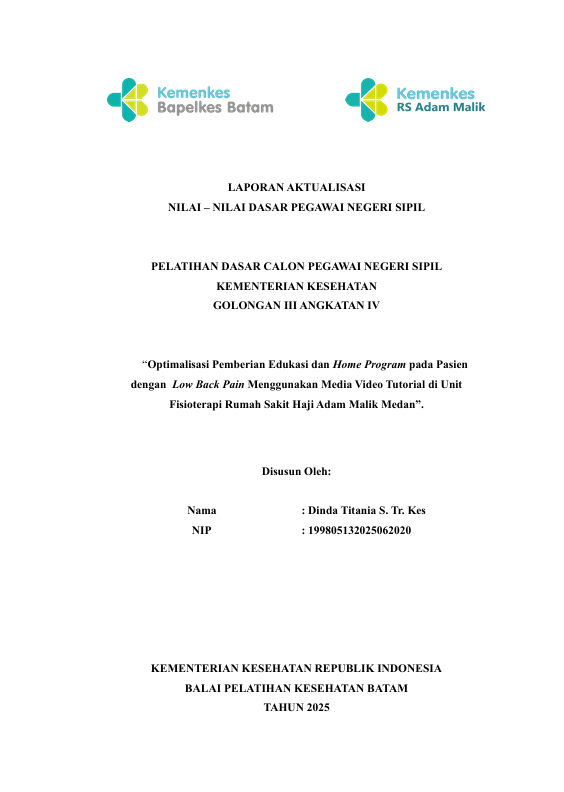 Optimalisasi Pemberian Edukasi Dan Home Program Pada Pasien Dengan Low Back Pain Menggunakan Media Video Tutorial Di Unit Fisioterapi Rumah Sakit Haji Adam Malik Medan