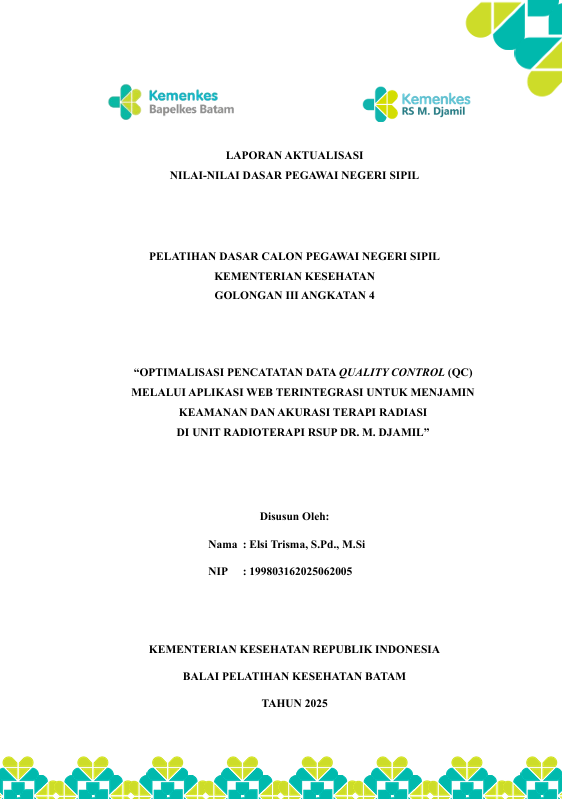 Optimalisasi Pencatatan Data Quality Control (Qc) Melalui Aplikasi Web Terintegrasi Untuk Menjamin Keamanan Dan Akurasi Terapi Radiasi Di Unit Radioterapi Rsup Dr. M. Djamil