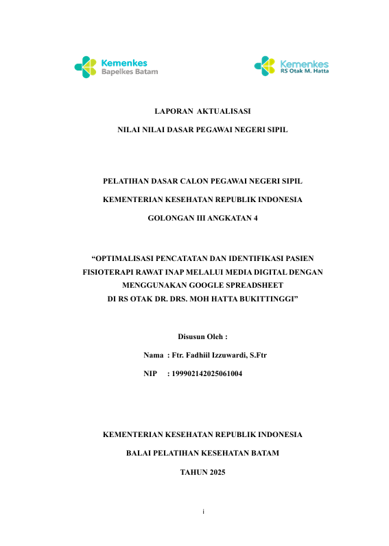 Optimalisasi Pencatatan Dan Identifikasi Pasien Fisioterapi Rawat Inap Melalui Media Digital Dengan Menggunakan Google Spreadsheet Di Rs Otak Dr. Drs. Moh Hatta Bukittinggi