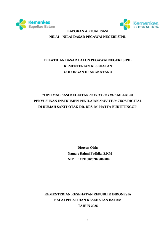 Optimalisasi Kegiatan Safety Patrol Melalui Penyusunan Instrumen Penilaian Safety Patrol Digital Di Rumah Sakit Otak Dr. Drs. M. Hatta Bukittinggi