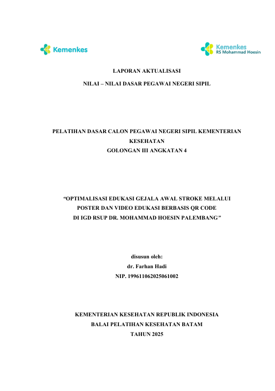 Optimalisasi Edukasi Gejala Awal Stroke Melalui Poster Dan Video Edukasi Berbasis Qr Code Di Igd Rsup Dr. Mohammad Hoesin Palembang