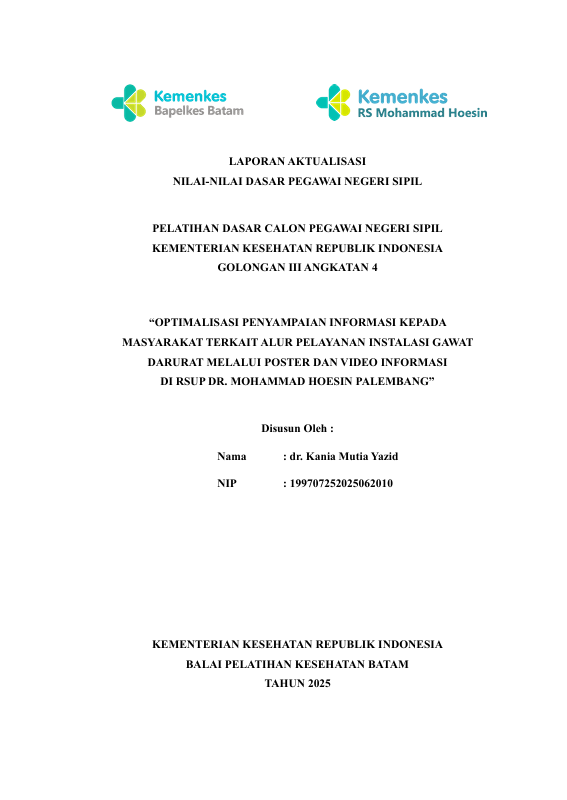 Optimalisasi Penyampaian Informasi Kepada Masyarakat Terkait Alur Pelayanan Instalasi Gawat Darurat Melalui Poster Dan Video Informasi Di Rsup Dr. Mohammad Hoesin Palembang
